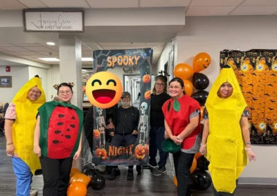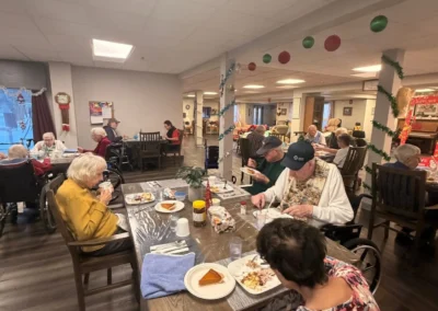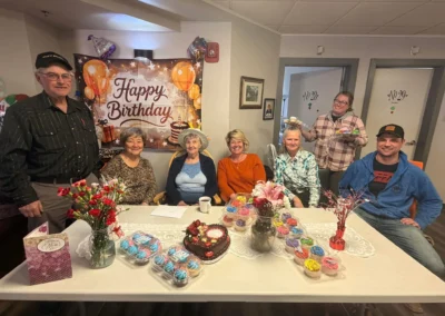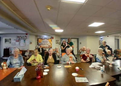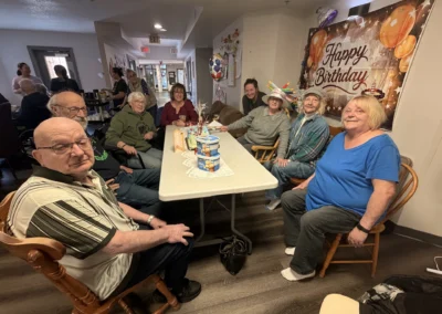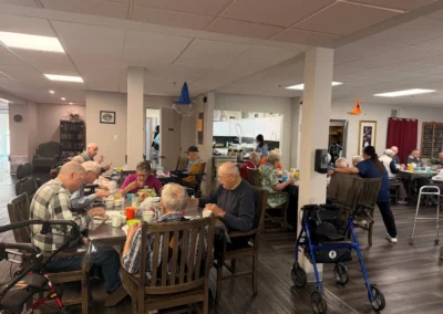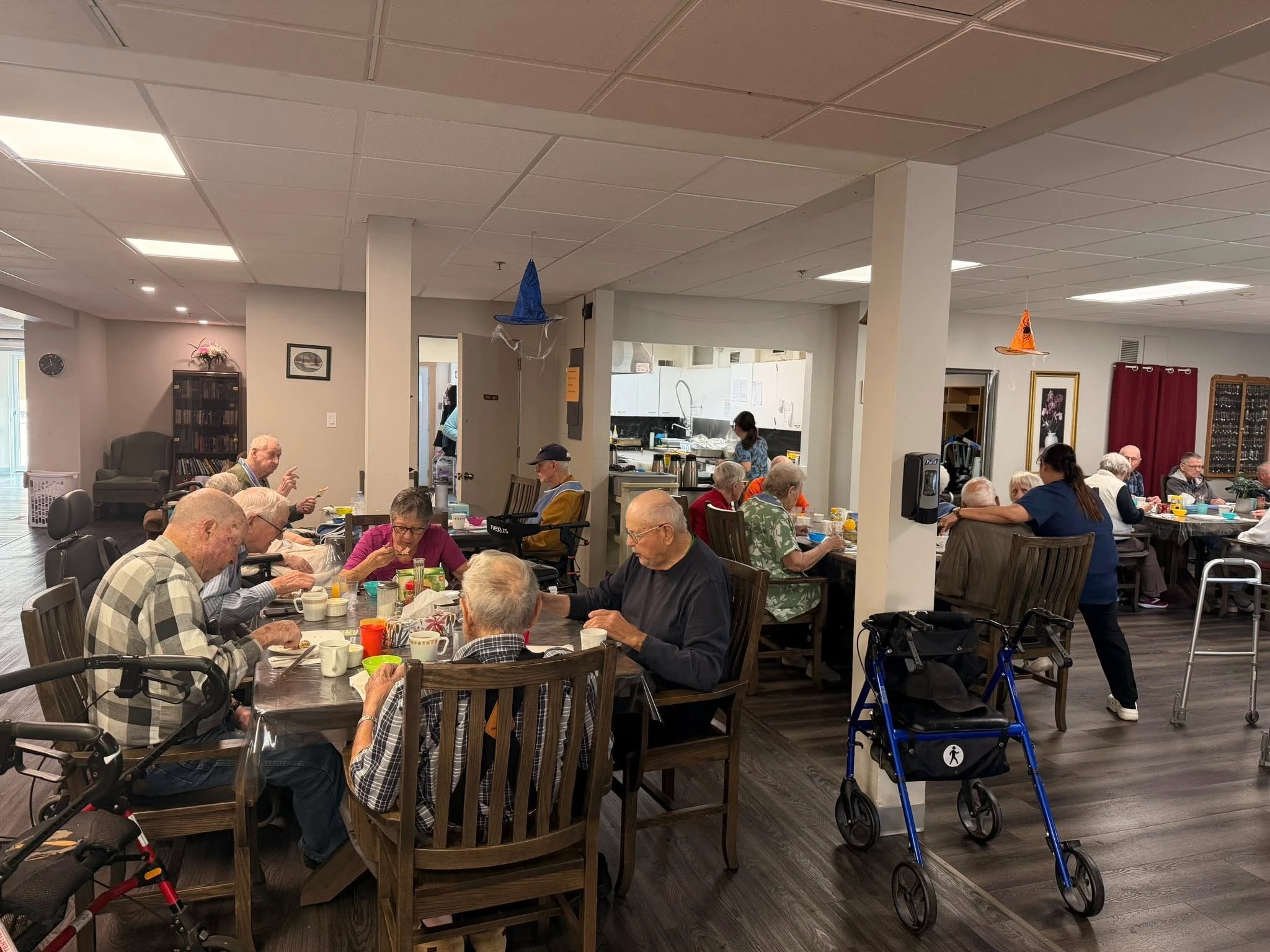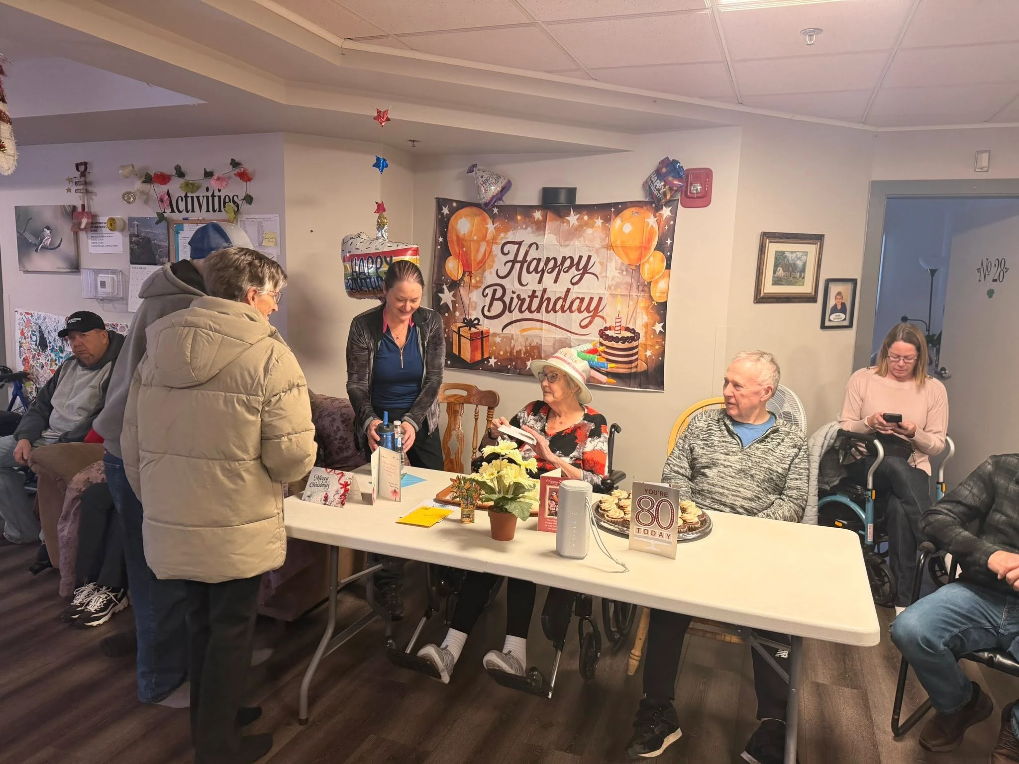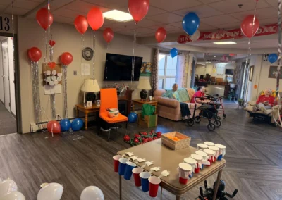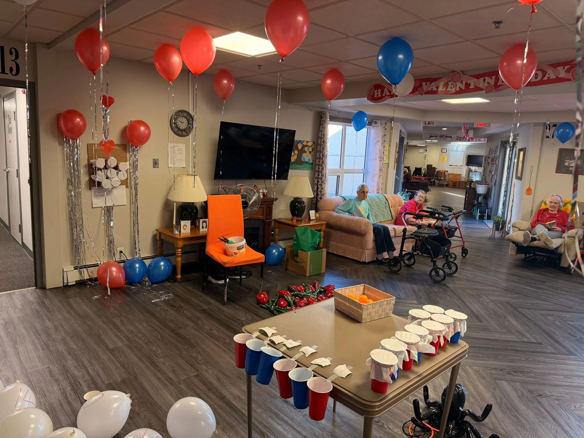 The facility currently features 43 rooms- double rooms suitable for couples, and single rooms for individuals. All rooms are wheelchair-accessible, and include living space, closet space, and a private washroom. Communal spaces include a living room, coffee area, dining room, laundry room, and main activities room. Each wing has its own tub room, with assistance available upon request.